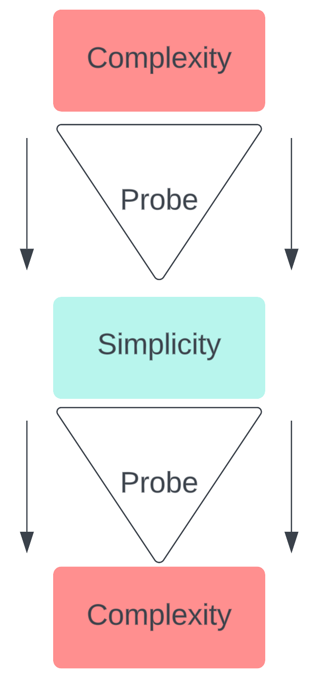 But probing has its own side-effects because it requires you to edit + alter the system. Doing so can further complexify the dynamic system, for when you interact with a system, you induce a change. The change induced is a non-linear change. For example, take any system:
